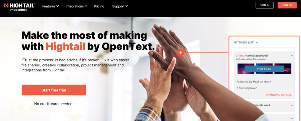2. Hightail: Best for collecting large creative files from clients