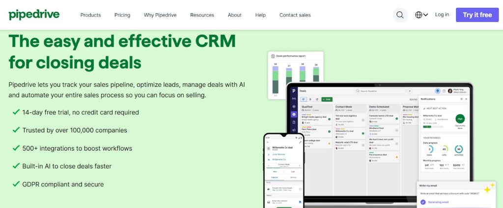 3. Pipedrive: Best CRM for managing mortgage leads and deals